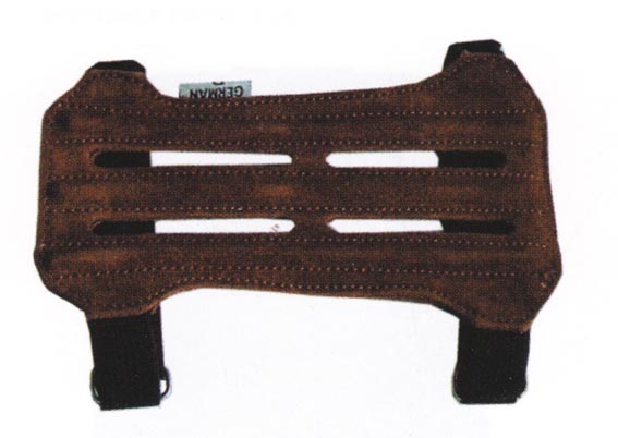 Dieser 3-Stege Wildlederarmschutz wurde im traditionellen Style gefertigt.