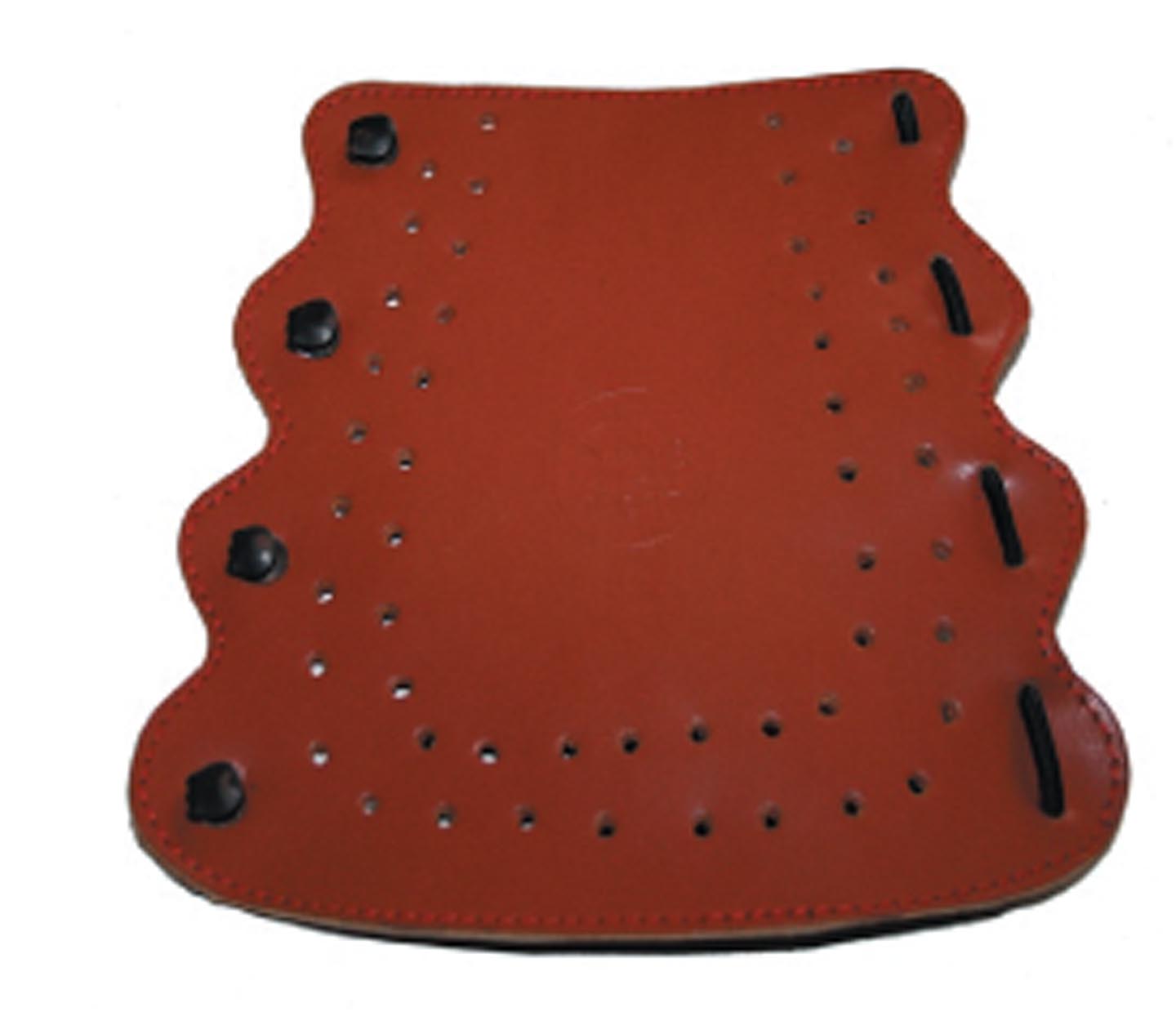 Dieser Lederarmschutz in Stanzoptik passt sich dem Arm gut an und