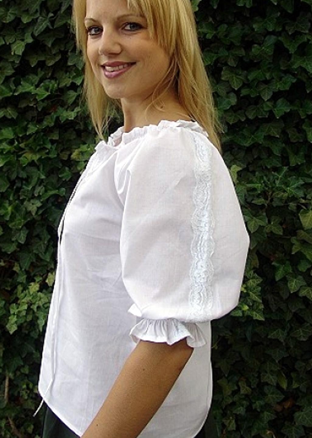 Mit einem Spitzenband auf den Ärmeln