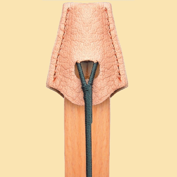 Diese Schutzkappe aus Leder wird einfach über das untere Ende des Bogens gezogen.