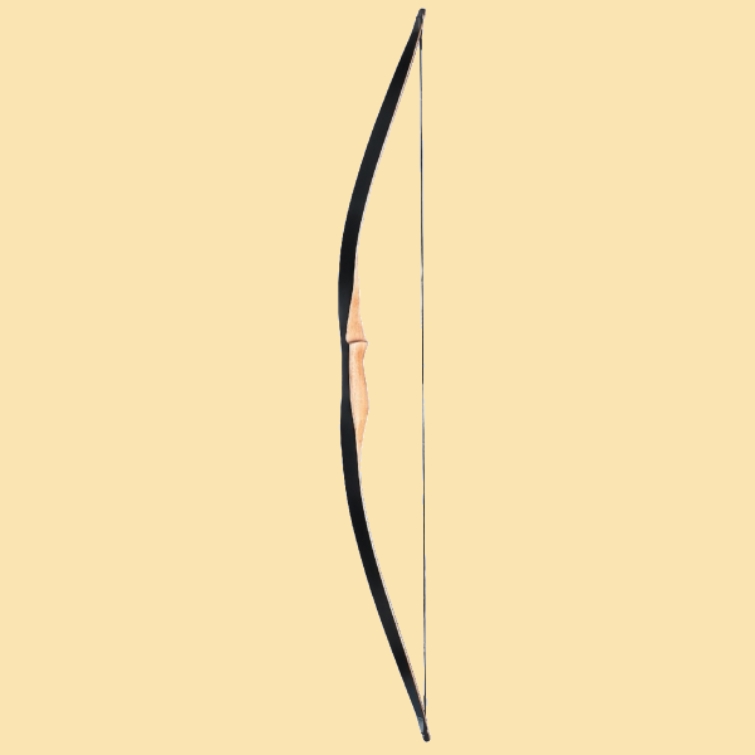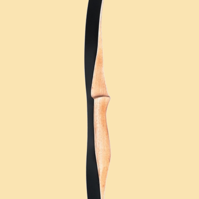 Ein einfacher Bogen mit hellem Griffstück und schwarzen Wurfarmen.
