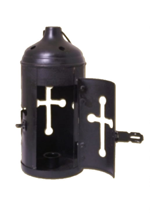 Zum Platzieren der Kerze ist eine kleine Tür eingenietet.