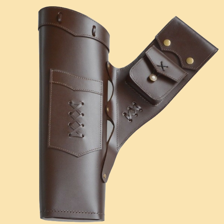 Auf der breiten Gürtelschlaufe ist eine Accessoiretasche angebracht.