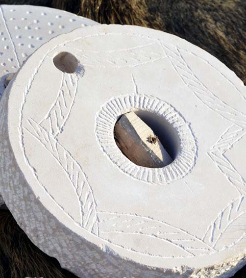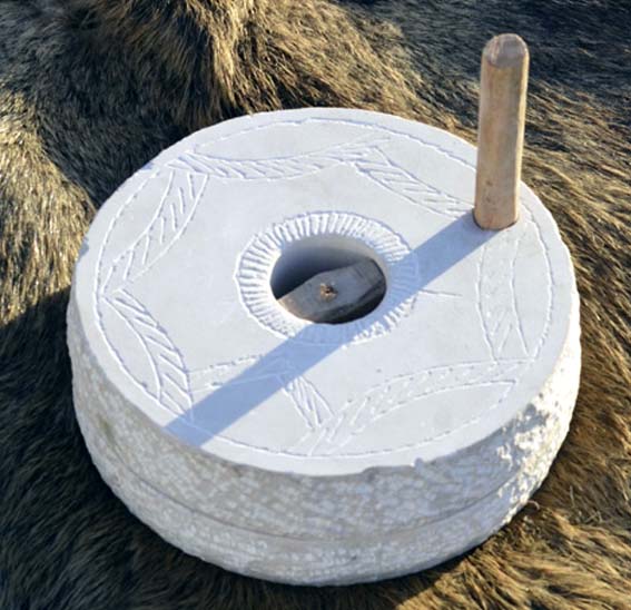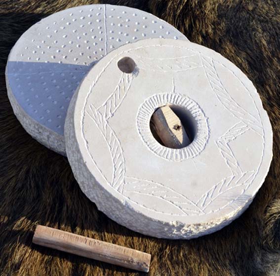 Die Handmühle besteht aus zwei scheibenförmig gehauenen Steinen,