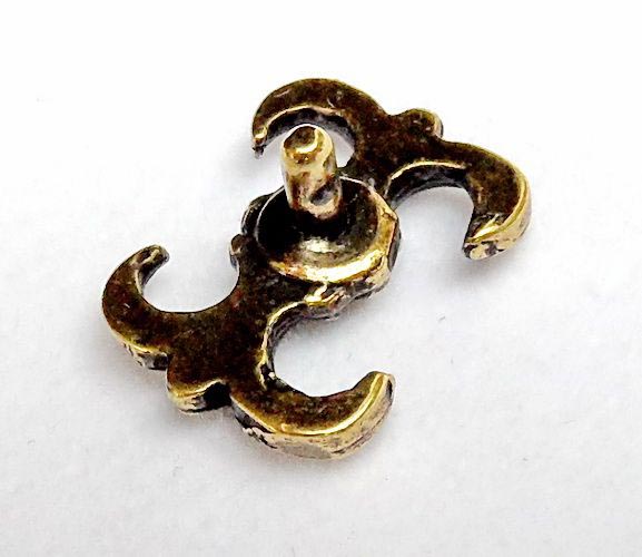 Auf der Rückseite des Gürtelbeschlages befindet sich ein 5 mm langer Stift, auf den zur Befestigung einfach eine kleine, mitgelieferte Kappe aufgesetzt und diese mit ein paar leichten Hammerschlägen fixiert wird