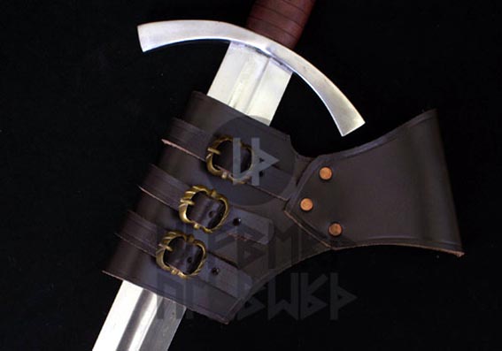 Der Schwerthalter aus Leder eignet sich optimal für das Tragen am Gürtel.