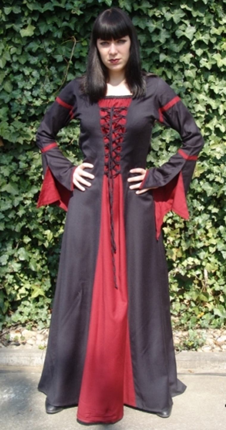 Viskosekleid mit Trompetenärmeln "Berblin" Schwarz/Rot