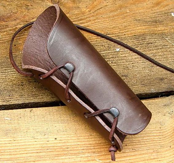 Der Armschützer wird aus Leder gefertigt.