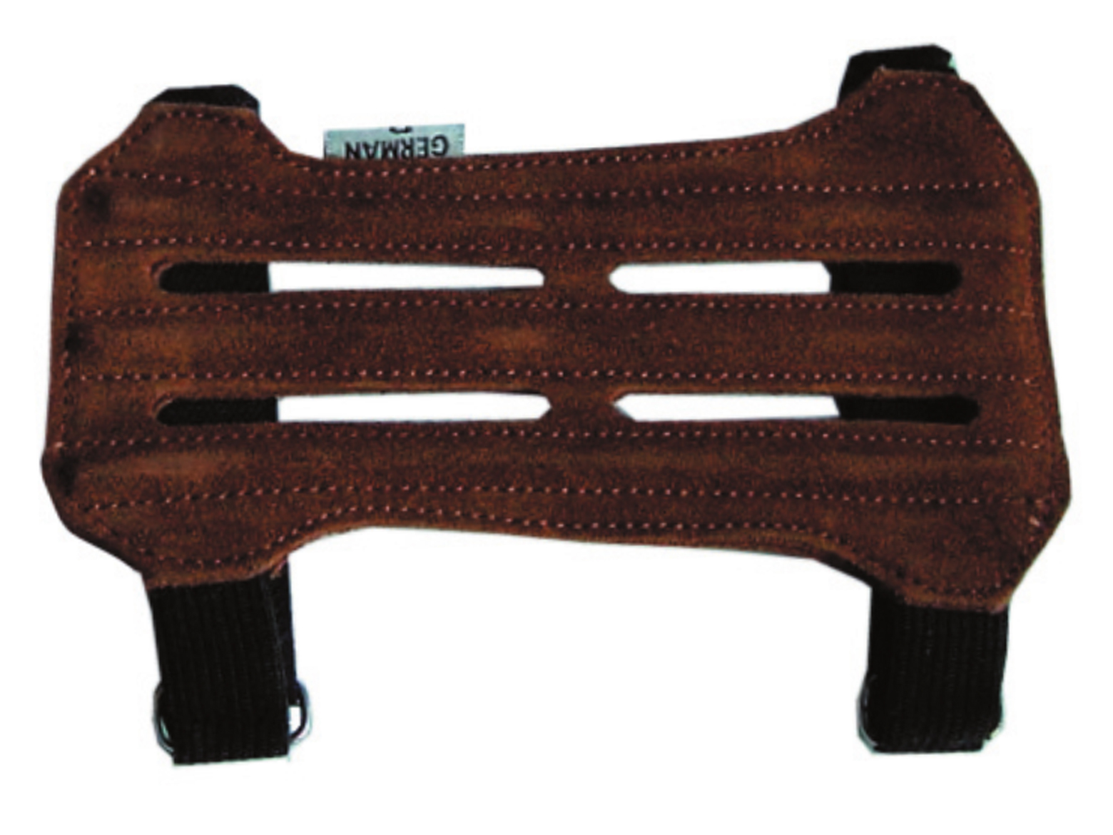 Dieser 3-Stege Wildlederarmschutz wurde im traditionellen Style gefertigt.
