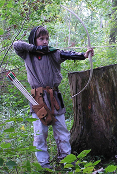 beim spielerischen Schießen mit Bogen und Pfeil.