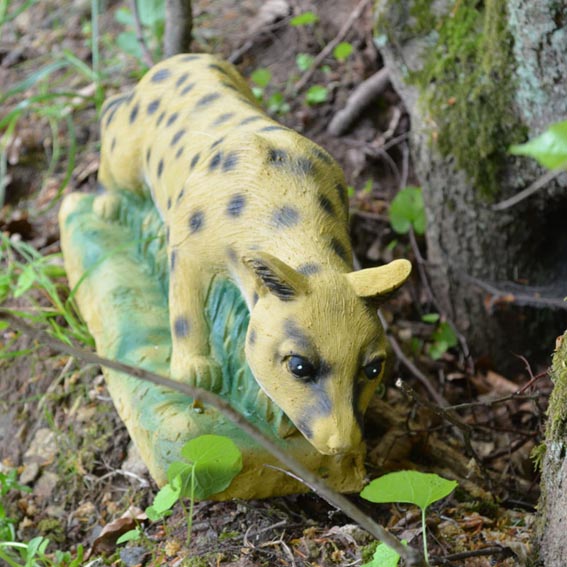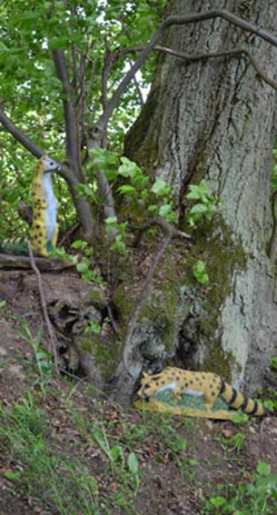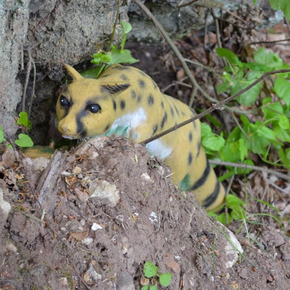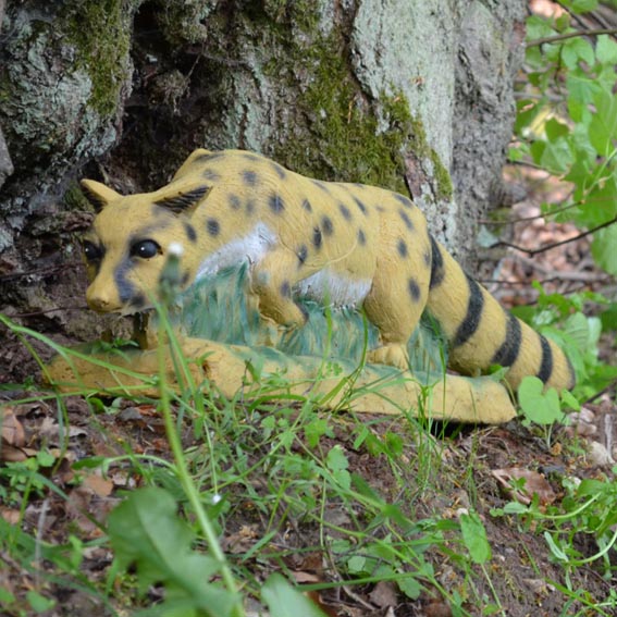Authentische Nachbildung einer Ginsterkatze in Lebensgröße.