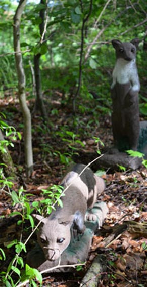 Eine authentische Nachbildung eines laufenden Steinmarders in Lebensgröße.