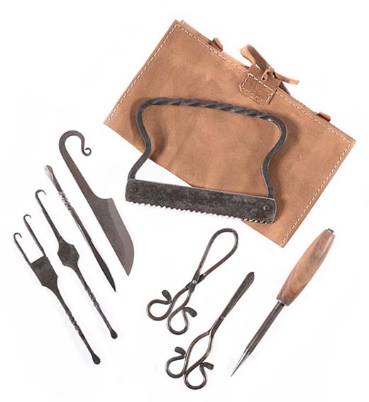 Das mittelalterliche Arztbesteck umfasst acht handgeschmiedete,
