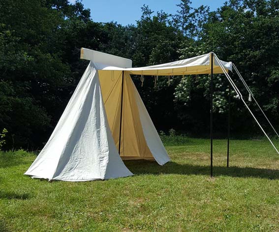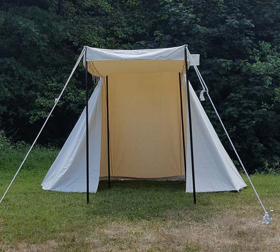 Robustes, handliche Sächsisches Händlerzelt das dem kleinen Krämer ausreichend Platz bietet, um seine Ware feil zu bieten.