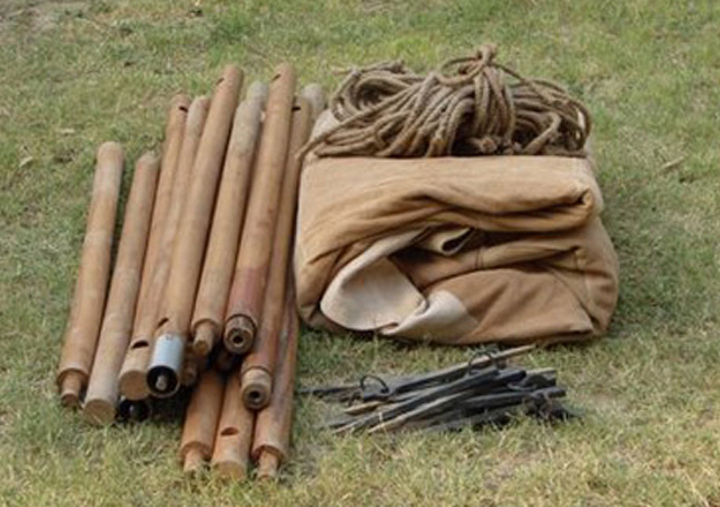 Die Zeltplane dieses Legionärszelt ist aus vegetabil gegerbtem Rindsleder genäht.