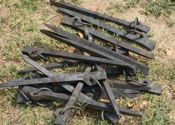 Die Zelthaken (Heringe) sind nach Originalvorlagen hangeschmiedet und