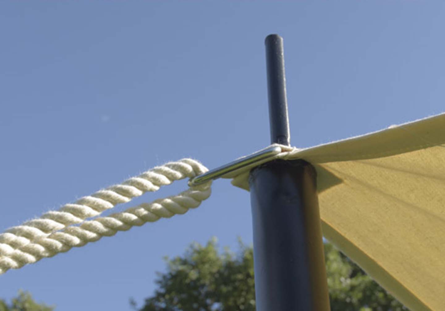 Die Seile nicht zu stark spannen, denn Naturmaterialien wie Holz und Baumwolle verändern sich bei Luftfeuchtigkeit und brauchen Platz zum Ausdehnen bzw. Zusammenziehen.