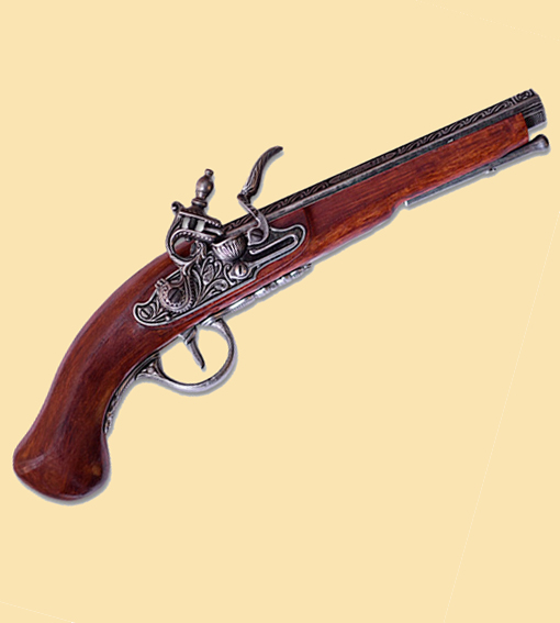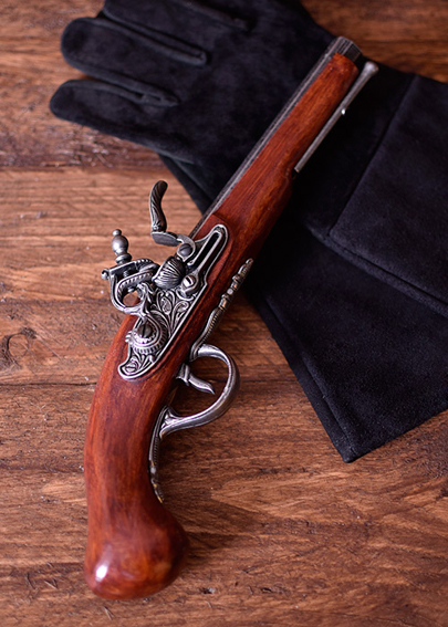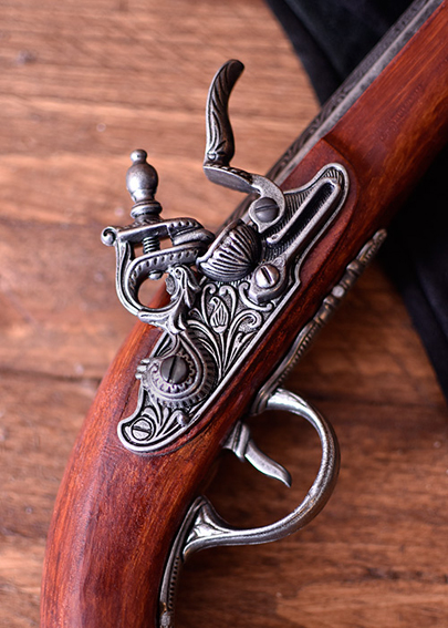 Die Mechanik dieser Steinschlosspistole ist voll beweglich,