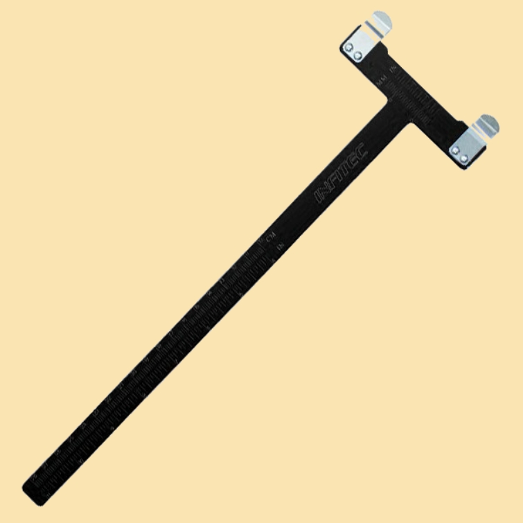 Sehnenmaßstab aus Aluminium zur genauen Bestimmung der Nockpunktposition.