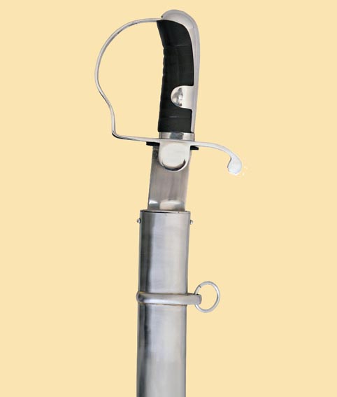 Griffpartie und passende Säbelscheide sind ebenfalls aus Stahl gefertigt.