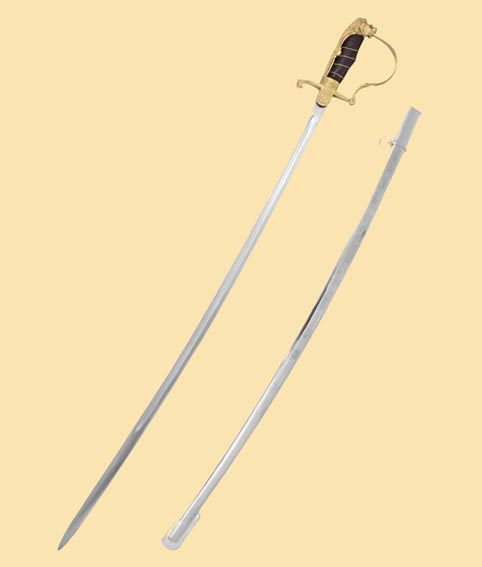 Der Säbel kommt mit einer passenden Scheide aus vernickeltem Stahl.