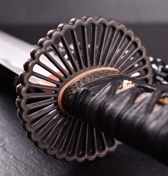 Die Griffwicklung (Tsuka-Ito) besteht aus schwarzem Leder.