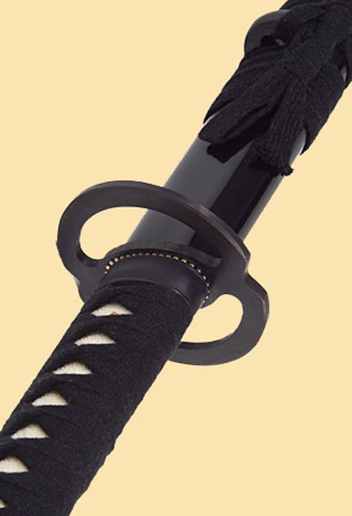 Die Griffwicklung (Tsuka-Ito) ist aus schwarzer Baumwolle traditionell angebracht.