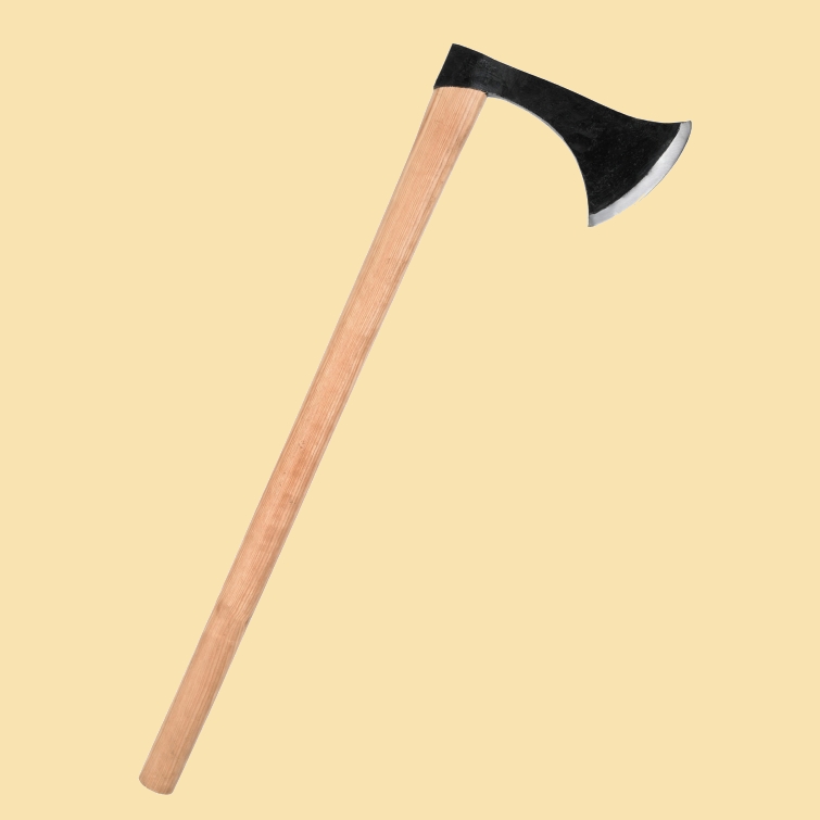 Mit schwerem handgeschmiedeten Axtblatt aus Karbonstahl.