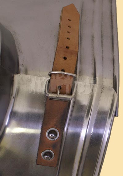 Beide Brust- und Rückenteile sind mit Hilfe der angenieteten Lederriemen mit Schnallen