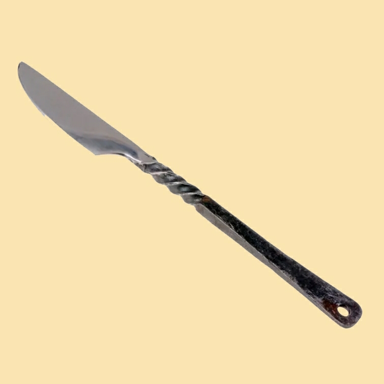 Das mittelalterliche Besteck-Set besteht aus dem kunstvoll tordierten Messer,