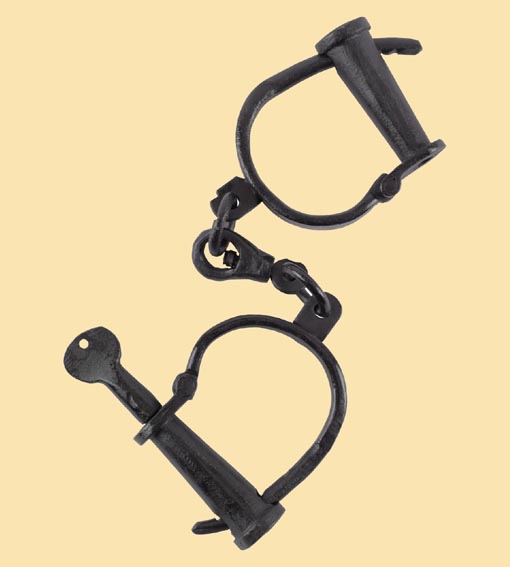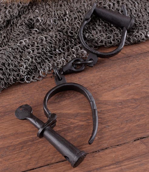 Mittelalter-Handschellen aus Stahl, Handgeschmiedet, mit Schlüssel