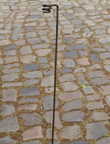 Der Fackelhalter aus Stahl ist aus einem Stück handgeschmiedet.