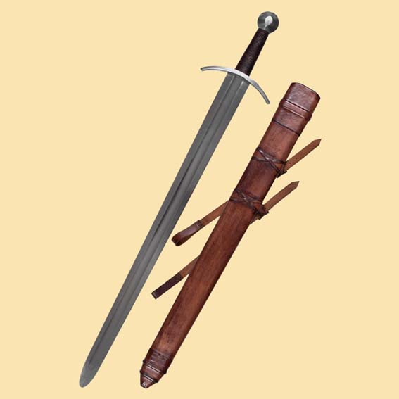 Das Schwert kommt mit einer Holz-Lederscheide mit Lederriemen
