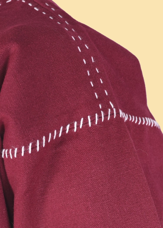 und mit von Hand genähten Zierstichen versehen.