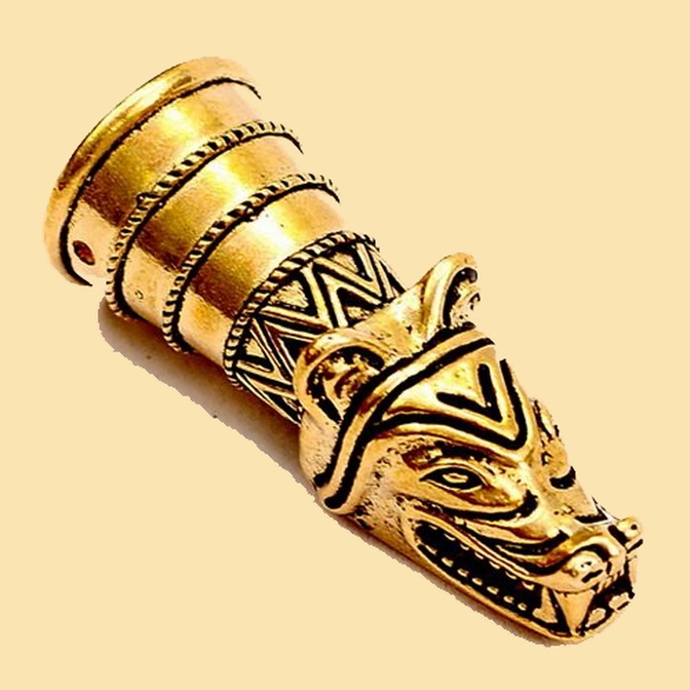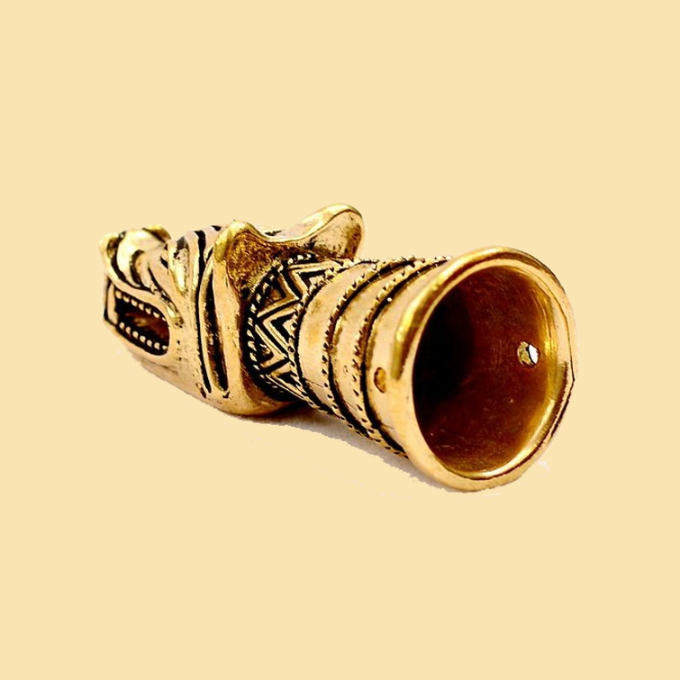 Trinkhorn-Spitze mit Wolfskopf Bronze