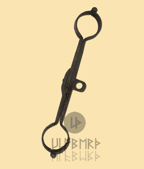 Die Handschelle ist aus drei Teilen Flachstahl, handgeschmiedet.