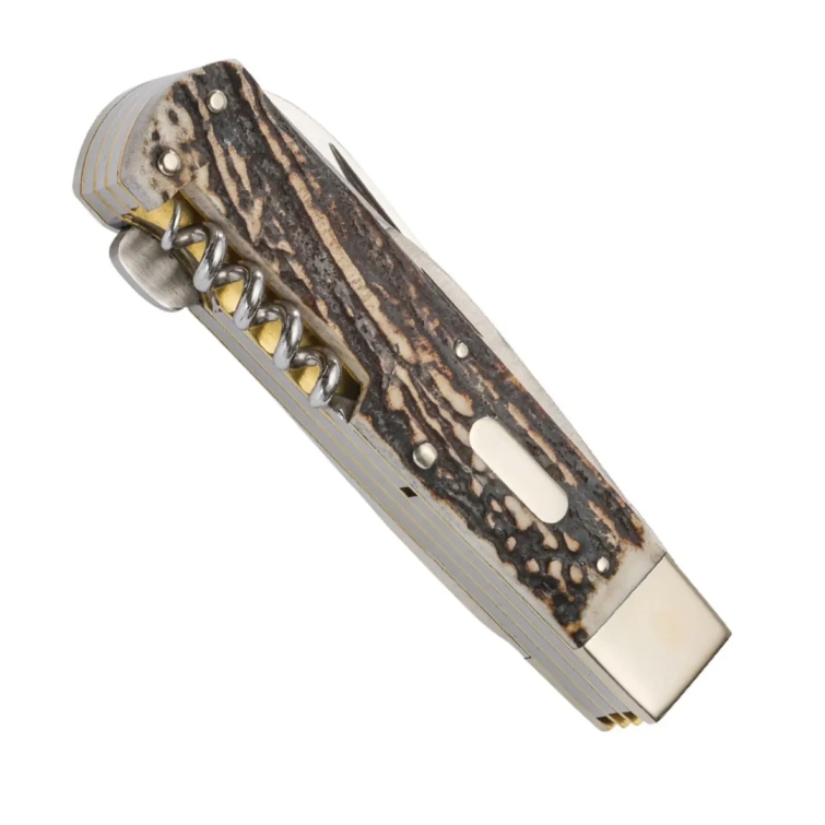 einer Aufschärfklinge und einer Säge sowie einem Korkenzieher.
