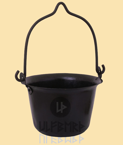 Der Topf ist mit Schmiederuß geschwärzt und eingeölt.
