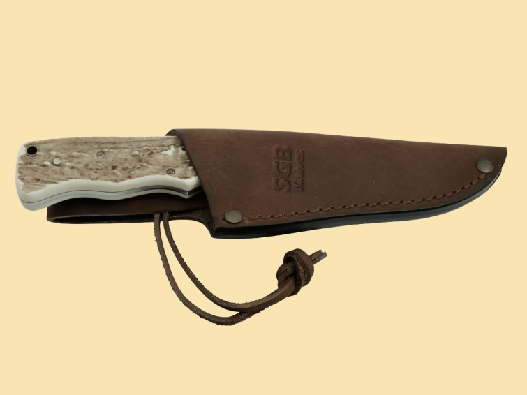 Ausgeliefert wird das Messer mit einer robusten braunen Sattellederscheide.
