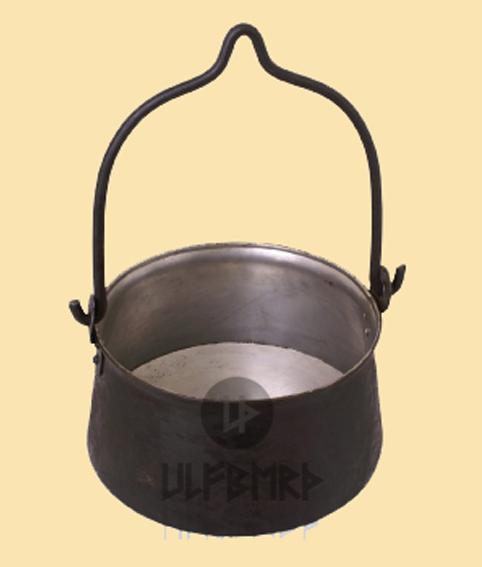 Außenseitig ist der Topf er mit Schmiederuß geschwärzt und eingeölt,