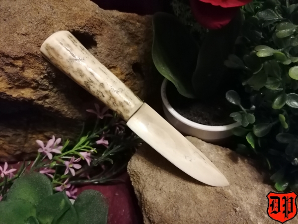 Der Griff wurde ebenfalls in Handarbeit hergestellt und besteht aus Geweih.