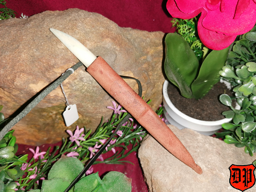 Die mitgelieferte und ebenfalls in Handarbeit gefertigte Messerscheide besteht aus ca. 2 mm dickem Italienischem Bullenleder.