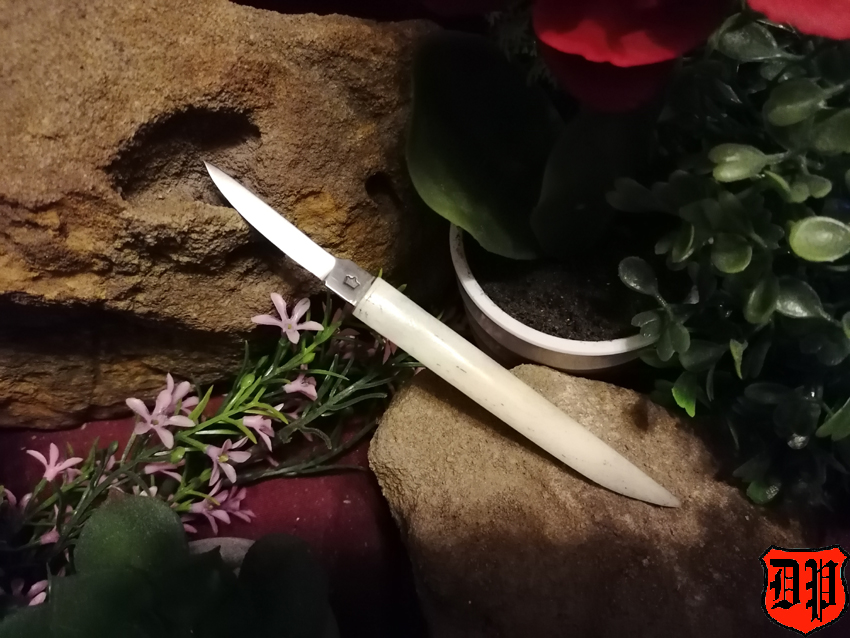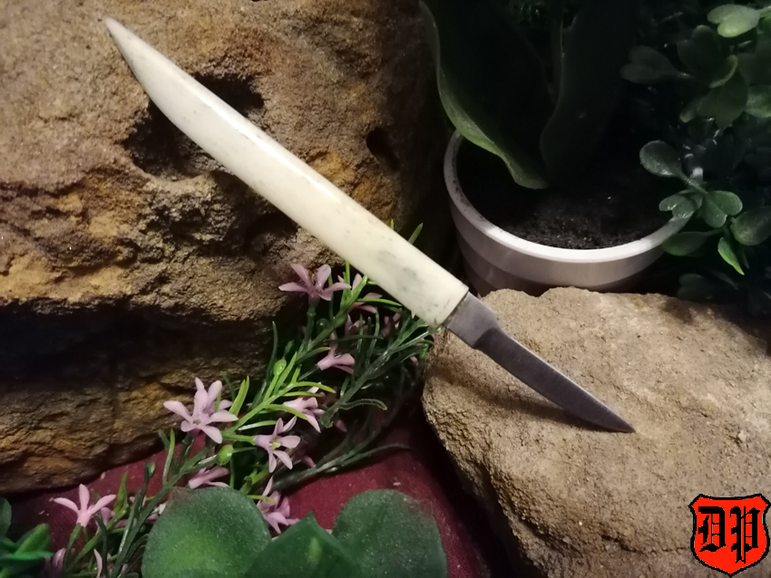 Der Griff wurde ebenfalls in Handarbeit hergestellt und besteht aus Geweih.