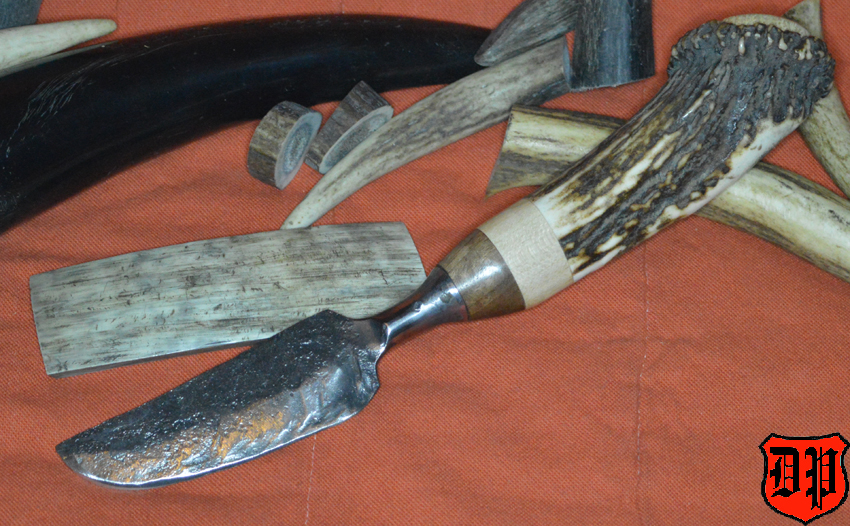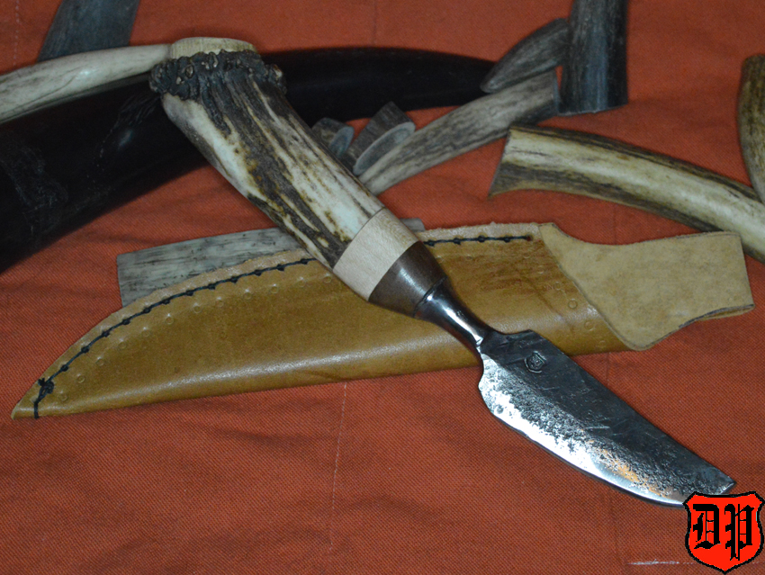 Der Griff wurde ebenfalls in Handarbeit hergestellt und besteht aus Geweih, Ahorn und Amerikanischem Nussbaum.