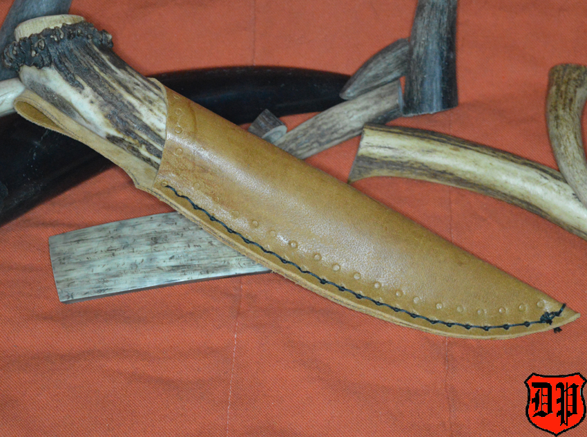 Die mitgelieferte und ebenfalls in Handarbeit gefertigte Messerscheide besteht aus ca. 2 mm dickem Italienischem Bullenleder.