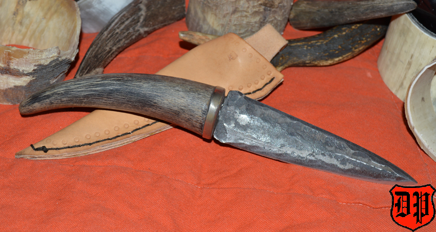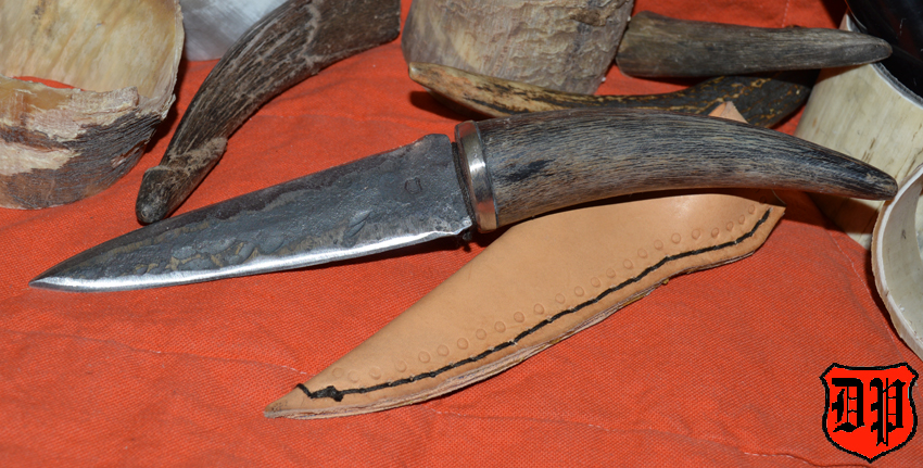 Die Klinge wurde per Hand aus Federstahl geschlagen und anschließend in Öl gehärtet.