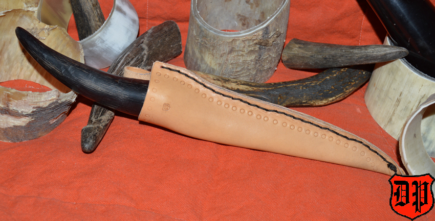 Die mitgelieferte und ebenfalls in Handarbeit gefertigte Messerscheide besteht aus ca. 2 mm dickem Italienischem Bullenleder.