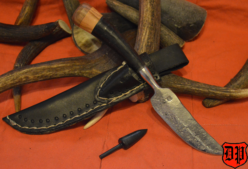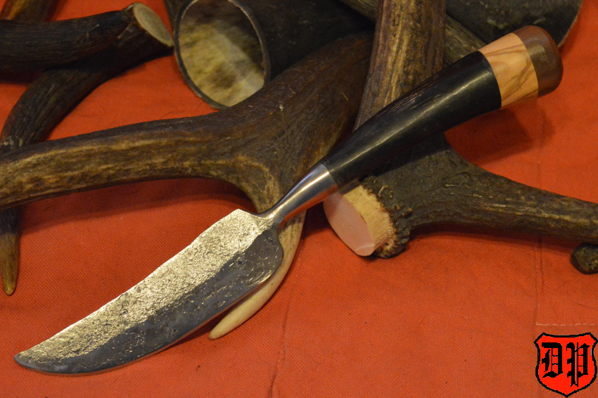 Die Klinge wurde per Hand aus Werkzeugstahl geschlagen und anschließend in Öl gehärtet.