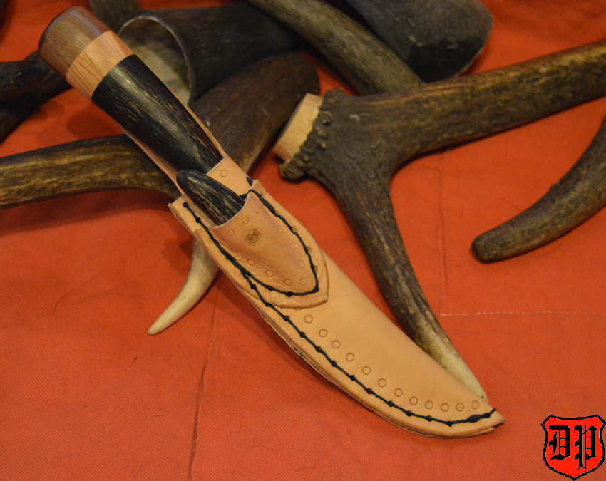 Die mitgelieferte und ebenfalls in Handarbeit gefertigte Messerscheide besteht aus ca. 2 mm dickem Italienischem Bullenleder.