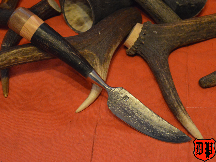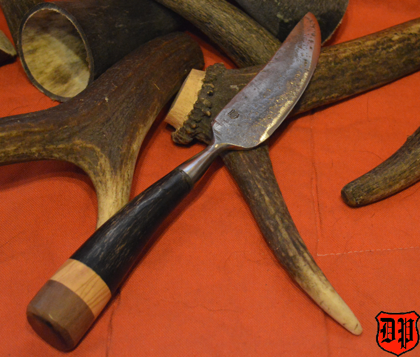 Die Klinge wurde per Hand aus Werkzeugstahl geschlagen und anschließend in Öl gehärtet.